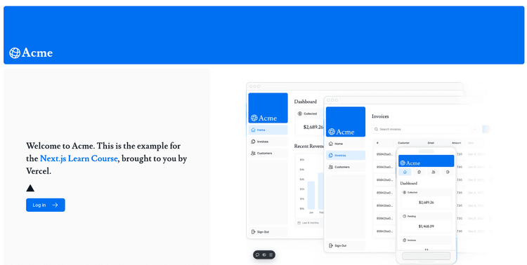 Description: Dashboard to manage invoices. Technologies: NextJs Tailwind Postgress. Implementations: CSS Styling Optimizing Fonts and Images Creating Layouts and Pages Navigating Between Pages Setting Up Your Database Fetching Data Static and Dynamic Rendering Streaming Partial Prerendering Adding Search and Pagination Mutating Data Handling Errors Improving Accessibility Adding Authentication Adding Metadata